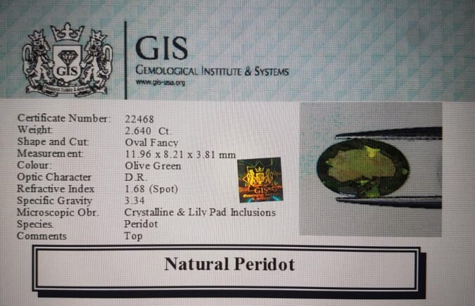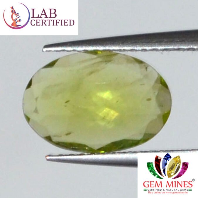 Beautiful 2.64 Ct. Peridot (Burma Mines) Sava 2 Ratti. Free Horoscope & Free Pundit Ji Advise / Consultation. Original Natural Lab certified gems by IGI GTL / Birth stones / Large Gem Selection of shree shubh Rashi Ratan Vedic dhan at Gem Mines. May Bhagwan Brahma, Vishnu, Shiv & Universe bless you.