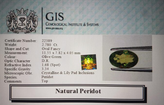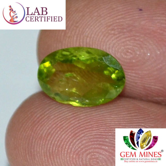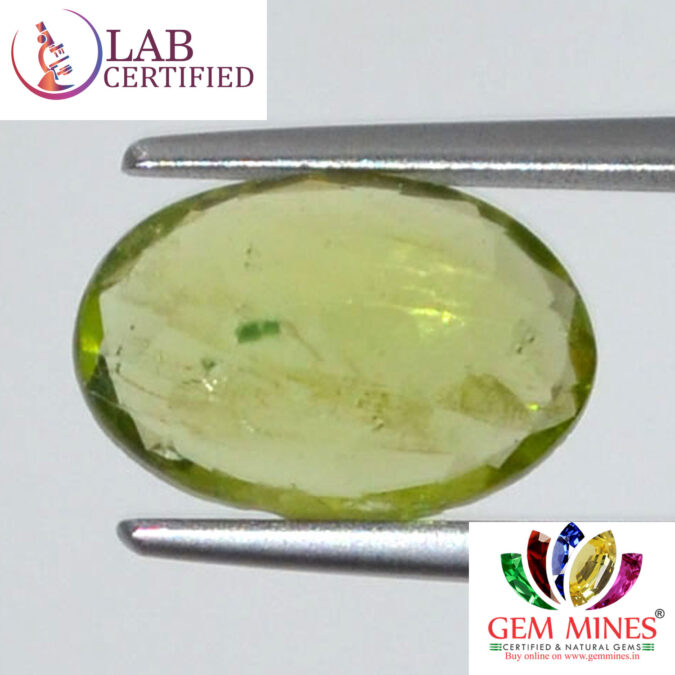 Beautiful 2.78 Ct. Peridot (Burma Mines) Sava 3 Ratti. Free Horoscope & Free Pundit Ji Advise / Consultation. Original Natural Lab certified gems by IGI GTL / Birth stones / Large Gem Selection of shree shubh Rashi Ratan Vedic dhan at Gem Mines. May Bhagwan Brahma, Vishnu, Shiv & Universe bless you.