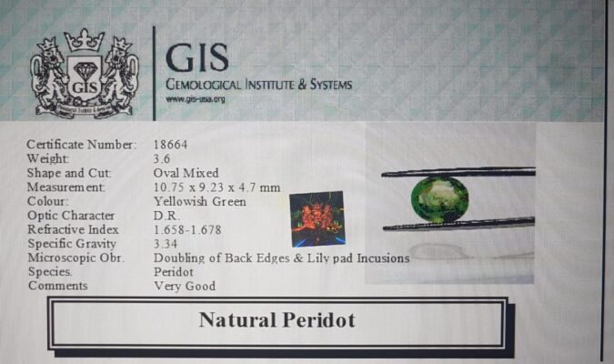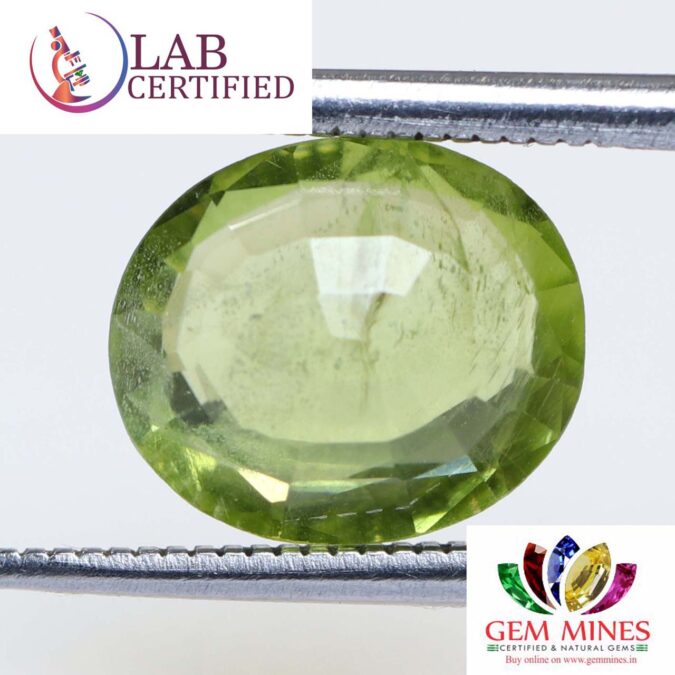 Beautiful 3.6 Ct. Peridot (Burma Mines) Sava 4 Ratti Peridot. Free Horoscope & Free Pundit Ji Advise / Consultation. Original Natural Lab certified gems by IGI GTL / Birth stones / Large Gem Selection of shree shubh Rashi Ratan Vedic dhan at Gem Mines. May Bhagwan Brahma, Vishnu, Shiv & Universe bless you.