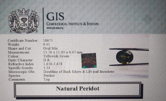 Beautiful 9.41 Ct. Peridot (Burma Mines) Sava 10 Ratti Peridot. Free Horoscope & Free Pundit Ji Advise / Consultation. Original Natural Lab certified gems by IGI GTL / Birth stones / Large Gem Selection of shree shubh Rashi Ratan Vedic dhan at Gem Mines. May Bhagwan Brahma, Vishnu, Shiv & Universe bless you.