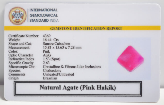 Beautiful 16.44 Cts Natural Agate (Pink Hakik) (Top-Mines) sva 18+ Ratti PINK HAKIK. Free Horoscope & Free Pundit Ji Astrological Advise / Consultation. Original Natural Lab certified gems by IGI GTL / Birth stones / Large Gem Selection of shree shubh Rashi Ratan Vedic dhan at Gem Mines. May Bhagwan Brahma, Vishnu, Shiv & Universe bless you.