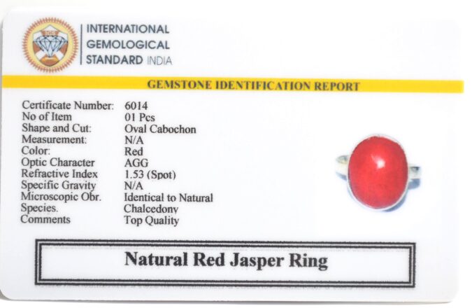 Gem Mines 100% Natural & Original Red Jasper Ring with Certificate.