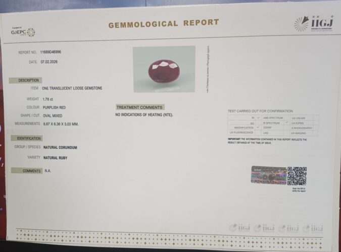 Beautiful 1.78 Cts Natural Ruby (Top-Mines) sva 1+ Ratti RUBY. Free Horoscope & Free Pundit Ji Astrological Advise / Consultation. Original Natural Lab certified gems by IGI GTL / Birth stones / Large Gem Selection of shree shubh Rashi Ratan Vedic dhan at Gem Mines. May Bhagwan Brahma, Vishnu, Shiv & Universe bless you.
