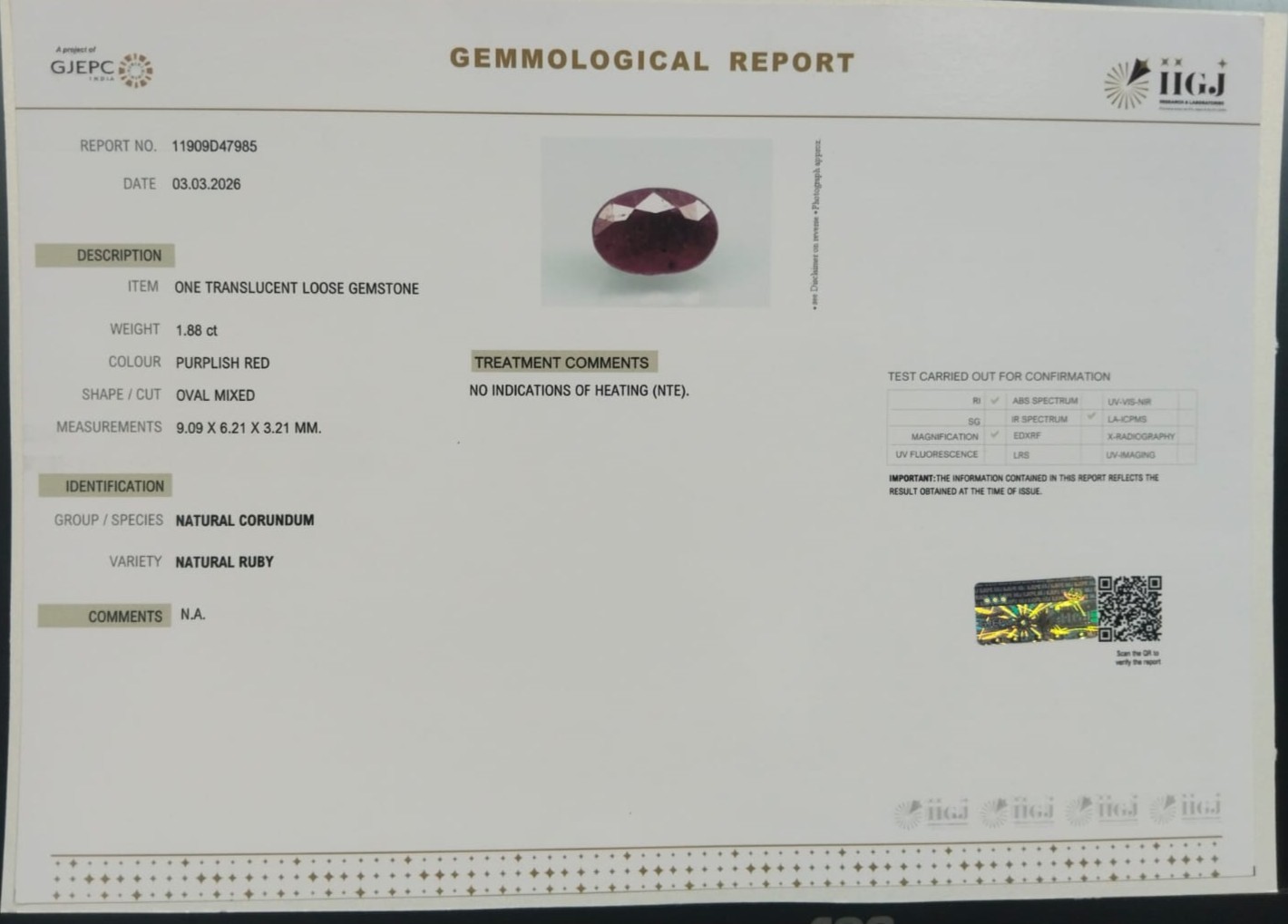 Beautiful 1.88 Cts Natural Ruby (AAA+-Mines) sva 2+ Ratti RUBY. Free Horoscope & Free Pundit Ji Astrological Advise / Consultation. Original Natural Lab certified gems by IGI GTL / Birth stones / Large Gem Selection of shree shubh Rashi Ratan Vedic dhan at Gem Mines. May Bhagwan Brahma, Vishnu, Shiv & Universe bless you.