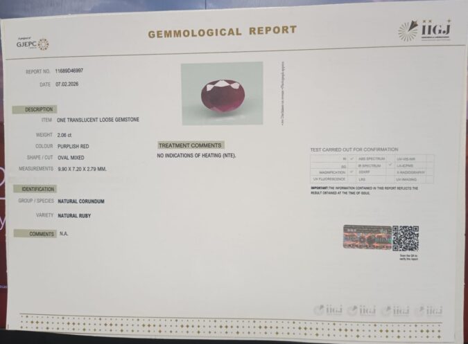 Beautiful 2.06 Cts Natural Ruby (Top-Mines) sva 2+ Ratti RUBY. Free Horoscope & Free Pundit Ji Astrological Advise / Consultation. Original Natural Lab certified gems by IGI GTL / Birth stones / Large Gem Selection of shree shubh Rashi Ratan Vedic dhan at Gem Mines. May Bhagwan Brahma, Vishnu, Shiv & Universe bless you.