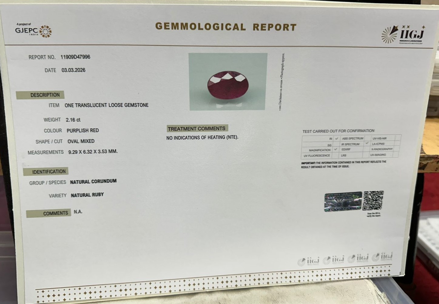 Beautiful 2.16 Cts Natural Ruby (AAA+-Mines) sva 2+ Ratti RUBY. Free Horoscope & Free Pundit Ji Astrological Advise / Consultation. Original Natural Lab certified gems by IGI GTL / Birth stones / Large Gem Selection of shree shubh Rashi Ratan Vedic dhan at Gem Mines. May Bhagwan Brahma, Vishnu, Shiv & Universe bless you.