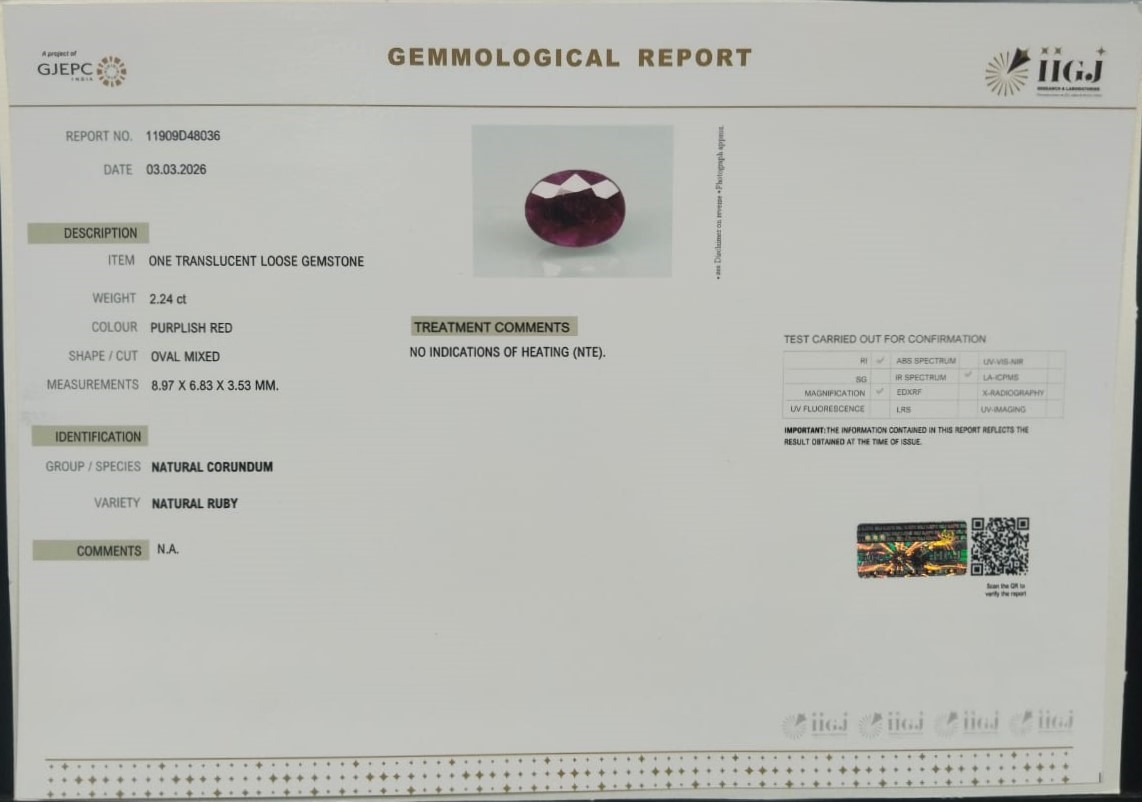 Beautiful 2.24 Cts Natural Ruby (AAA+-Mines) sva 2+ Ratti RUBY. Free Horoscope & Free Pundit Ji Astrological Advise / Consultation. Original Natural Lab certified gems by IGI GTL / Birth stones / Large Gem Selection of shree shubh Rashi Ratan Vedic dhan at Gem Mines. May Bhagwan Brahma, Vishnu, Shiv & Universe bless you.