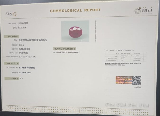 Beautiful 2.29 Cts Natural Ruby (AAA+-Mines) sva 2+ Ratti RUBY. Free Horoscope & Free Pundit Ji Astrological Advise / Consultation. Original Natural Lab certified gems by IGI GTL / Birth stones / Large Gem Selection of shree shubh Rashi Ratan Vedic dhan at Gem Mines. May Bhagwan Brahma, Vishnu, Shiv & Universe bless you.