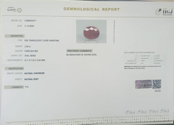 Beautiful 2.38 Cts Natural Ruby (Top+-Mines) sva 2+ Ratti RUBY. Free Horoscope & Free Pundit Ji Astrological Advise / Consultation. Original Natural Lab certified gems by IGI GTL / Birth stones / Large Gem Selection of shree shubh Rashi Ratan Vedic dhan at Gem Mines. May Bhagwan Brahma, Vishnu, Shiv & Universe bless you.