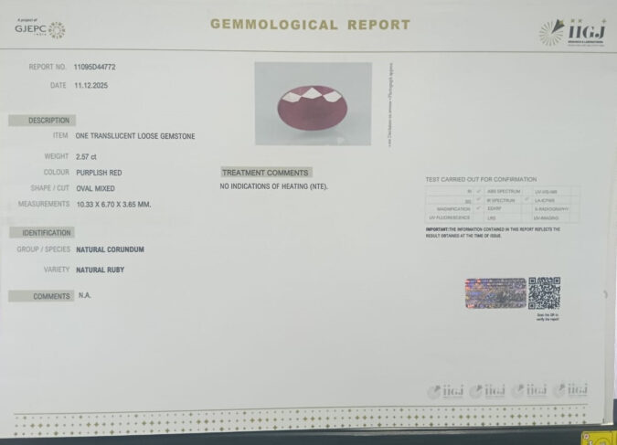 Beautiful 2.57 Cts Natural Ruby (Top+-Mines) sva 2+ Ratti RUBY. Free Horoscope & Free Pundit Ji Astrological Advise / Consultation. Original Natural Lab certified gems by IGI GTL / Birth stones / Large Gem Selection of shree shubh Rashi Ratan Vedic dhan at Gem Mines. May Bhagwan Brahma, Vishnu, Shiv & Universe bless you.