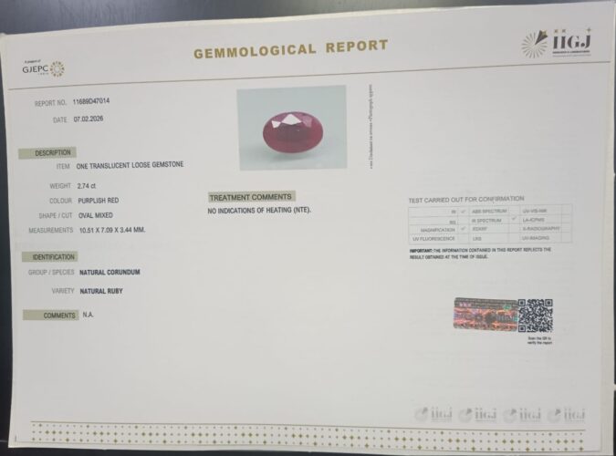 Beautiful 2.74 Cts Natural Ruby (Top-Mines) sva 3+ Ratti RUBY. Free Horoscope & Free Pundit Ji Astrological Advise / Consultation. Original Natural Lab certified gems by IGI GTL / Birth stones / Large Gem Selection of shree shubh Rashi Ratan Vedic dhan at Gem Mines. May Bhagwan Brahma, Vishnu, Shiv & Universe bless you.