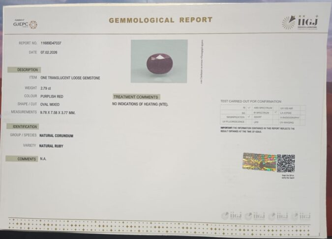 Beautiful 2.79 Cts Natural Ruby (Top-Mines) sva 3+ Ratti RUBY. Free Horoscope & Free Pundit Ji Astrological Advise / Consultation. Original Natural Lab certified gems by IGI GTL / Birth stones / Large Gem Selection of shree shubh Rashi Ratan Vedic dhan at Gem Mines. May Bhagwan Brahma, Vishnu, Shiv & Universe bless you.