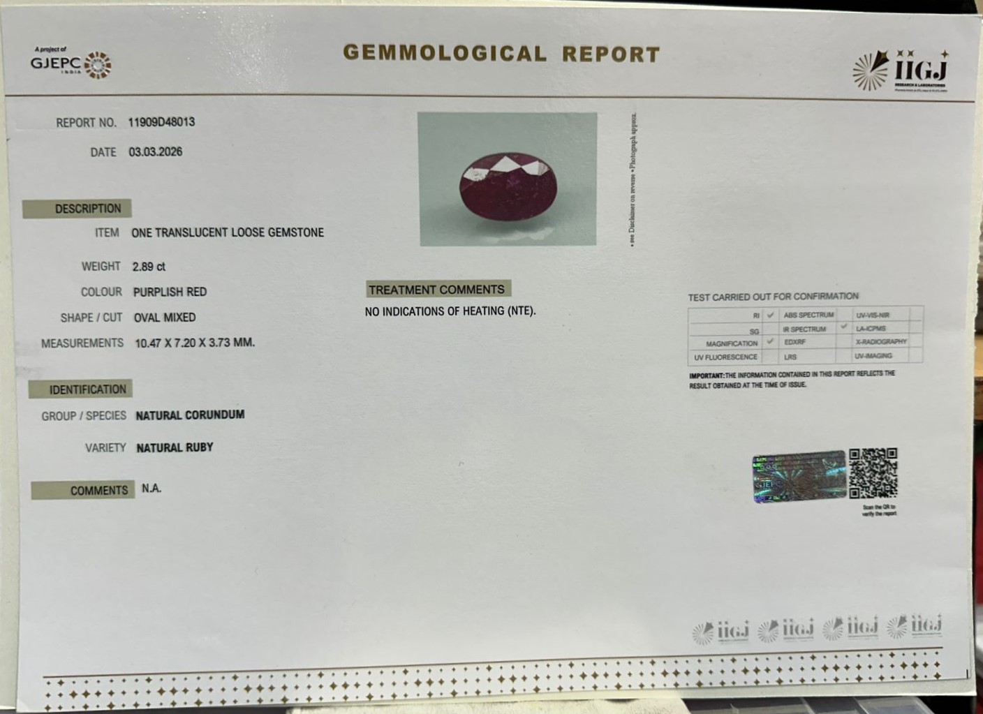 RUBY 2.89 Ct.