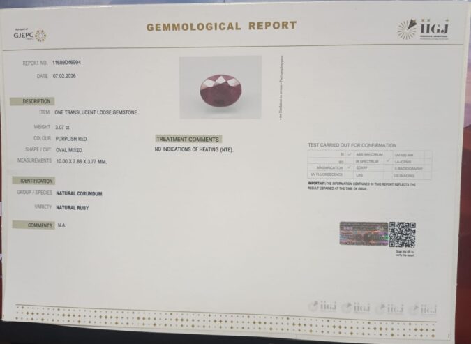 Beautiful 3.07 Cts Natural Ruby (Top-Mines) sva 3+ Ratti RUBY. Free Horoscope & Free Pundit Ji Astrological Advise / Consultation. Original Natural Lab certified gems by IGI GTL / Birth stones / Large Gem Selection of shree shubh Rashi Ratan Vedic dhan at Gem Mines. May Bhagwan Brahma, Vishnu, Shiv & Universe bless you.