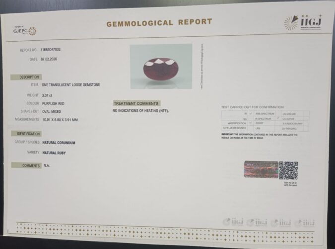 Beautiful 3.07 Cts Natural Ruby (Top-Mines) sva 3+ Ratti RUBY. Free Horoscope & Free Pundit Ji Astrological Advise / Consultation. Original Natural Lab certified gems by IGI GTL / Birth stones / Large Gem Selection of shree shubh Rashi Ratan Vedic dhan at Gem Mines. May Bhagwan Brahma, Vishnu, Shiv & Universe bless you.