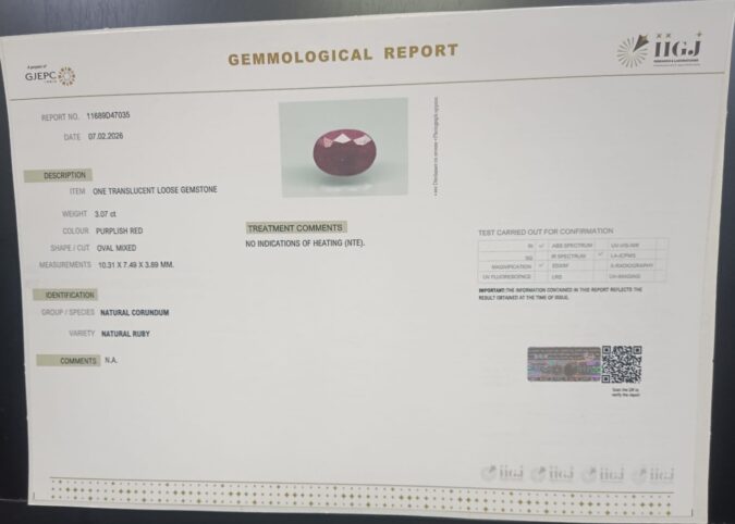 Beautiful 3.07 Cts Natural Ruby (Top-Mines) sva 3+ Ratti RUBY. Free Horoscope & Free Pundit Ji Astrological Advise / Consultation. Original Natural Lab certified gems by IGI GTL / Birth stones / Large Gem Selection of shree shubh Rashi Ratan Vedic dhan at Gem Mines. May Bhagwan Brahma, Vishnu, Shiv & Universe bless you.