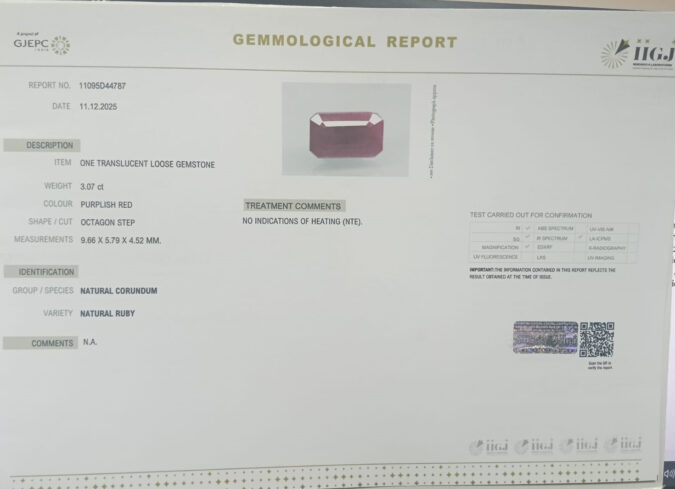 Beautiful 3.07 Cts Natural Ruby (Top+-Mines) sva 3+ Ratti RUBY. Free Horoscope & Free Pundit Ji Astrological Advise / Consultation. Original Natural Lab certified gems by IGI GTL / Birth stones / Large Gem Selection of shree shubh Rashi Ratan Vedic dhan at Gem Mines. May Bhagwan Brahma, Vishnu, Shiv & Universe bless you.