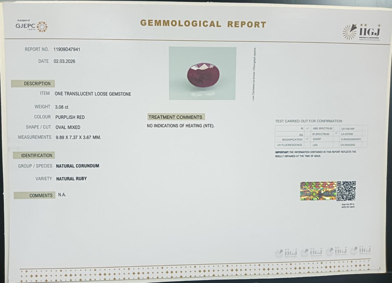 RUBY 3.08 Ct.