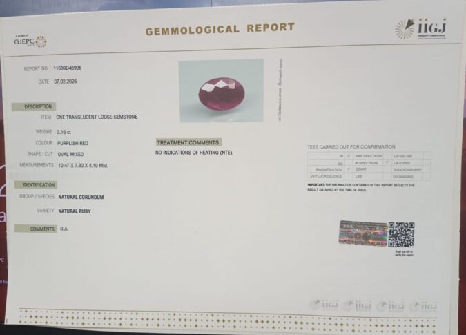 Beautiful 3.16 Cts Natural Ruby (Top-Mines) sva 3+ Ratti RUBY. Free Horoscope & Free Pundit Ji Astrological Advise / Consultation. Original Natural Lab certified gems by IGI GTL / Birth stones / Large Gem Selection of shree shubh Rashi Ratan Vedic dhan at Gem Mines. May Bhagwan Brahma, Vishnu, Shiv & Universe bless you.