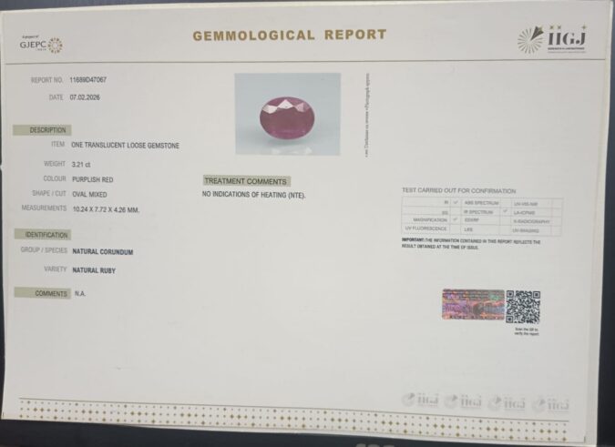 Certified Natural Ruby 3.21 Ct.(3+ Ratti) in OVAL MIXED shape