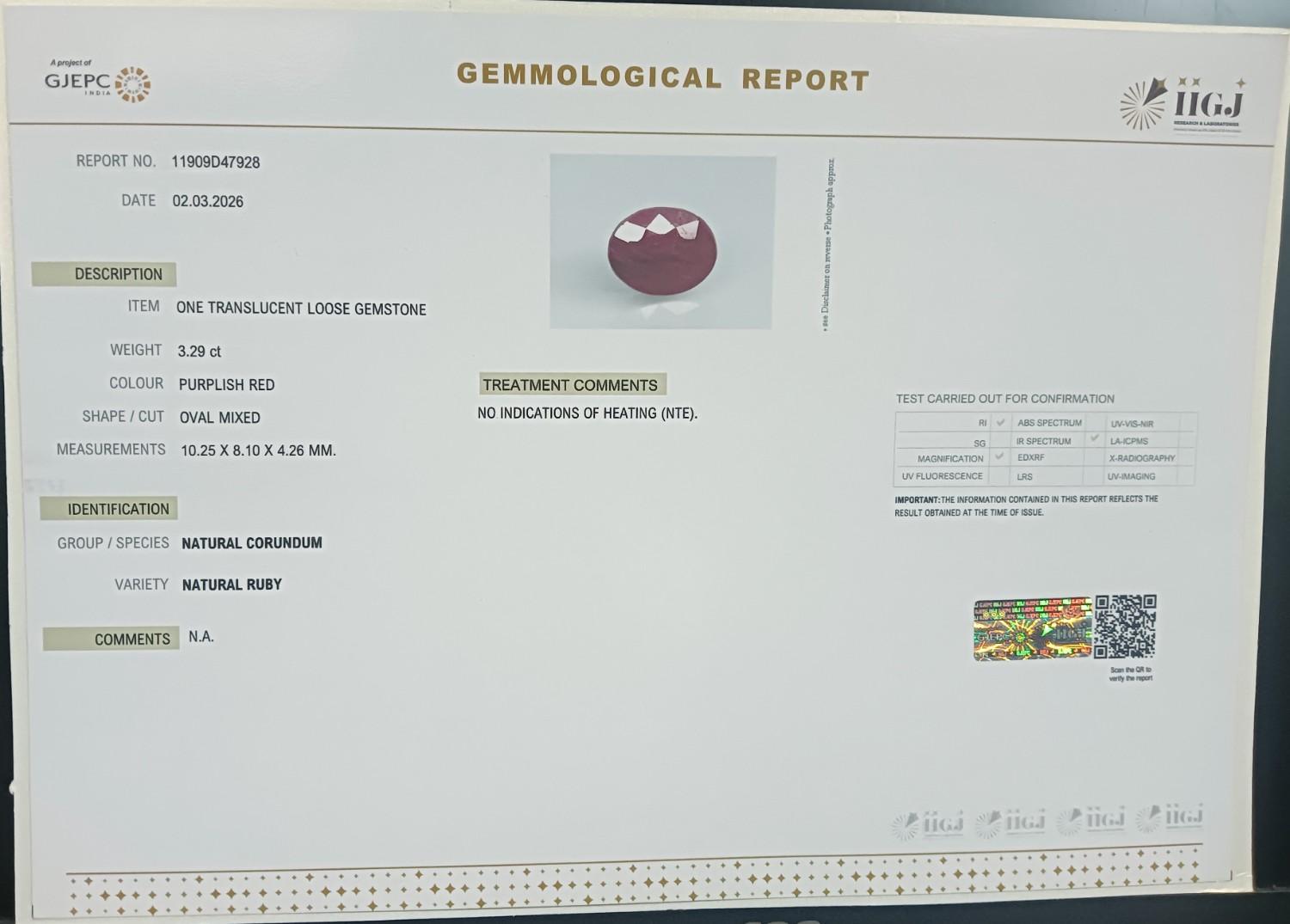 Beautiful 3.29 Cts Natural Ruby (AAA-Mines) sva 3+ Ratti RUBY. Free Horoscope & Free Pundit Ji Astrological Advise / Consultation. Original Natural Lab certified gems by IGI GTL / Birth stones / Large Gem Selection of shree shubh Rashi Ratan Vedic dhan at Gem Mines. May Bhagwan Brahma, Vishnu, Shiv & Universe bless you.