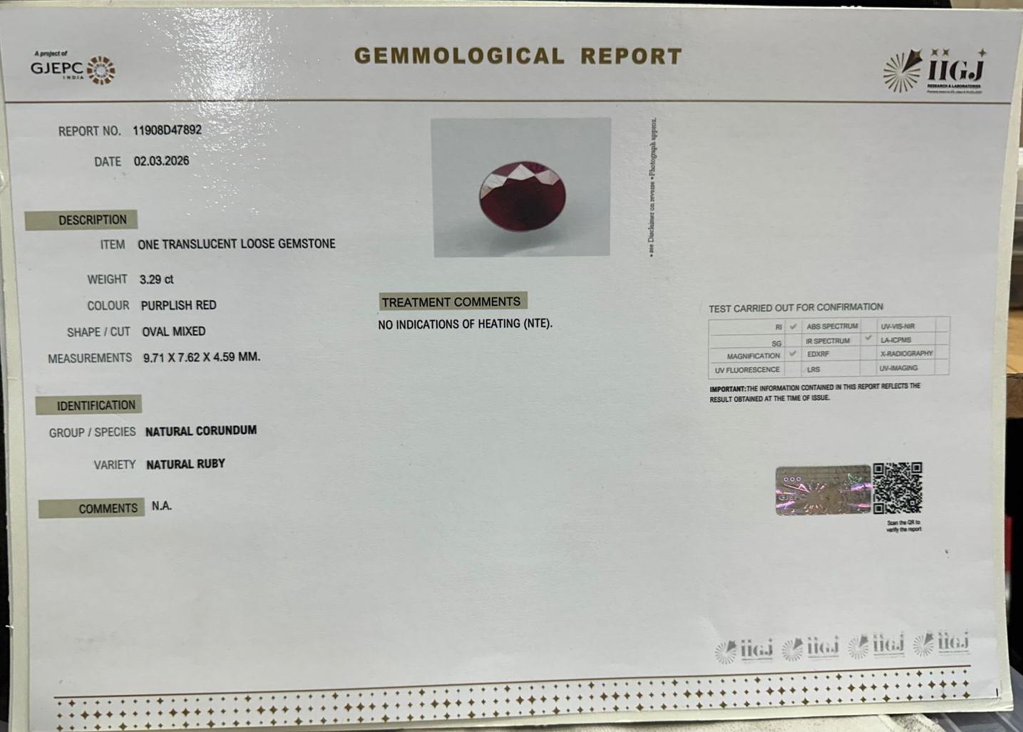 RUBY 3.29 Ct.