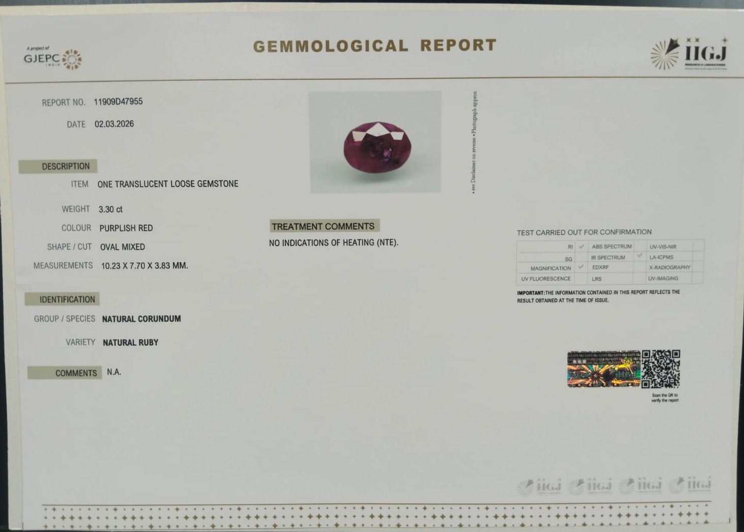 Beautiful 3.3 Cts Natural Ruby (AAA-Mines) sva 3+ Ratti RUBY. Free Horoscope & Free Pundit Ji Astrological Advise / Consultation. Original Natural Lab certified gems by IGI GTL / Birth stones / Large Gem Selection of shree shubh Rashi Ratan Vedic dhan at Gem Mines. May Bhagwan Brahma, Vishnu, Shiv & Universe bless you.