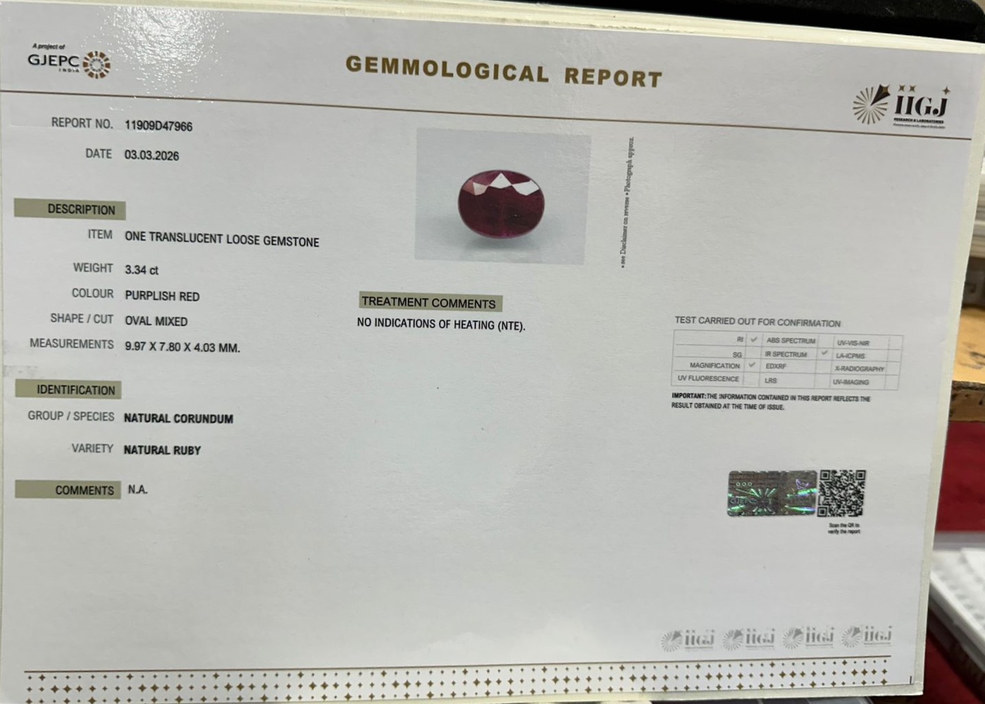 RUBY 3.34 Ct.