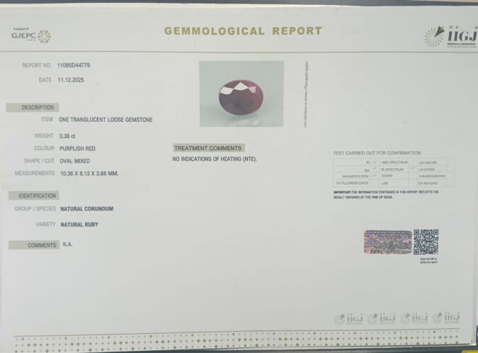 Beautiful 3.38 Cts Natural Ruby (Top+-Mines) sva 3+ Ratti RUBY. Free Horoscope & Free Pundit Ji Astrological Advise / Consultation. Original Natural Lab certified gems by IGI GTL / Birth stones / Large Gem Selection of shree shubh Rashi Ratan Vedic dhan at Gem Mines. May Bhagwan Brahma, Vishnu, Shiv & Universe bless you.