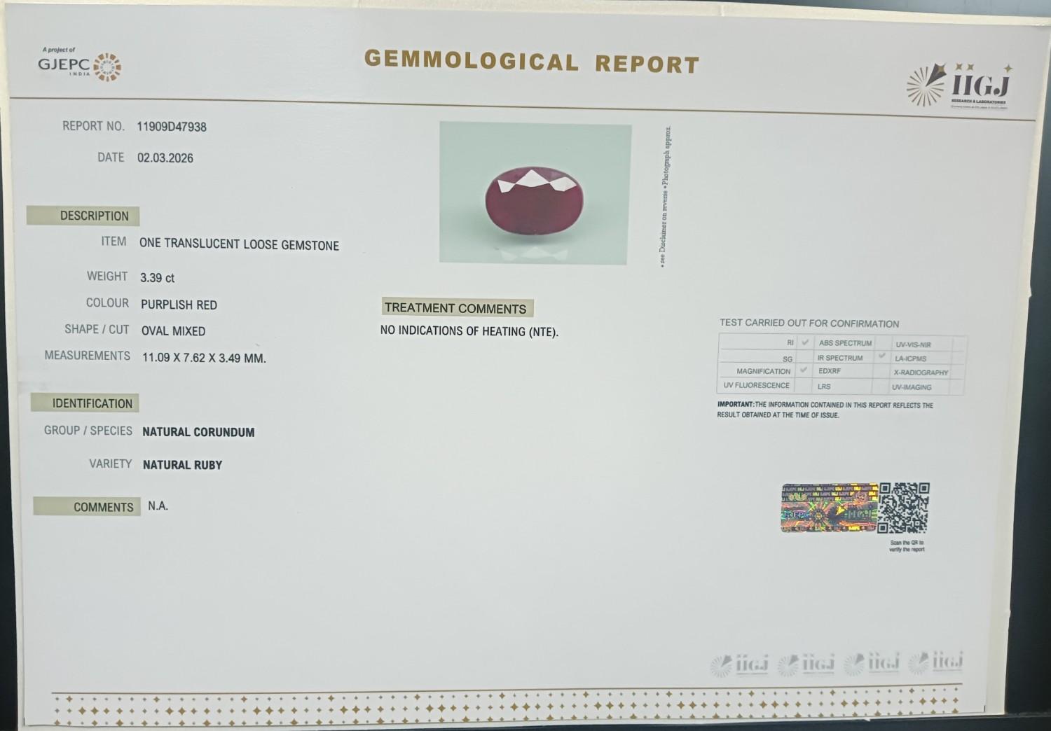 RUBY 3.39 Ct.