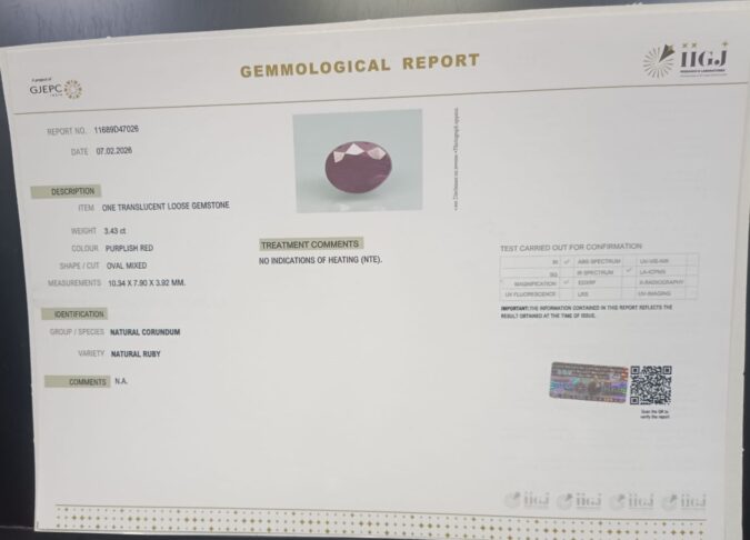 Beautiful 3.43 Cts Natural Ruby (Top-Mines) sva 3+ Ratti RUBY. Free Horoscope & Free Pundit Ji Astrological Advise / Consultation. Original Natural Lab certified gems by IGI GTL / Birth stones / Large Gem Selection of shree shubh Rashi Ratan Vedic dhan at Gem Mines. May Bhagwan Brahma, Vishnu, Shiv & Universe bless you.