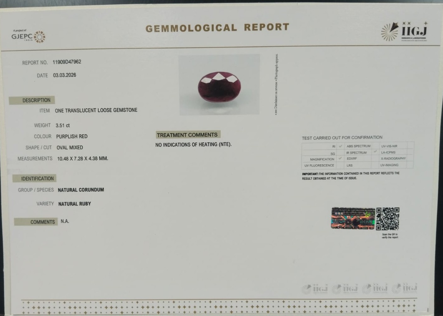 RUBY 3.51 Ct.