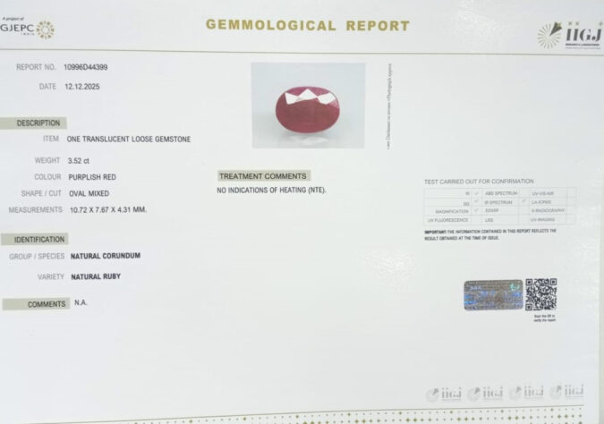 Beautiful 3.52 Cts Natural Ruby (Top-Mines) sva 3+ Ratti RUBY. Free Horoscope & Free Pundit Ji Astrological Advise / Consultation. Original Natural Lab certified gems by IGI GTL / Birth stones / Large Gem Selection of shree shubh Rashi Ratan Vedic dhan at Gem Mines. May Bhagwan Brahma, Vishnu, Shiv & Universe bless you.