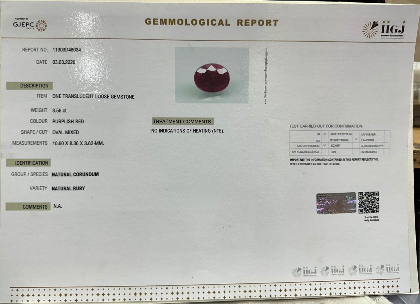 Beautiful 3.56 Cts Natural Ruby (AAA+-Mines) sva 3+ Ratti RUBY. Free Horoscope & Free Pundit Ji Astrological Advise / Consultation. Original Natural Lab certified gems by IGI GTL / Birth stones / Large Gem Selection of shree shubh Rashi Ratan Vedic dhan at Gem Mines. May Bhagwan Brahma, Vishnu, Shiv & Universe bless you.