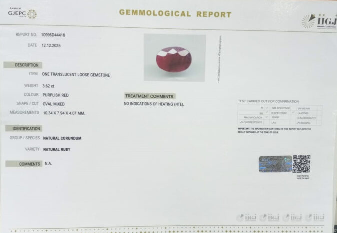 Beautiful 3.62 Cts Natural Ruby (Top+-Mines) sva 4+ Ratti RUBY. Free Horoscope & Free Pundit Ji Astrological Advise / Consultation. Original Natural Lab certified gems by IGI GTL / Birth stones / Large Gem Selection of shree shubh Rashi Ratan Vedic dhan at Gem Mines. May Bhagwan Brahma, Vishnu, Shiv & Universe bless you.