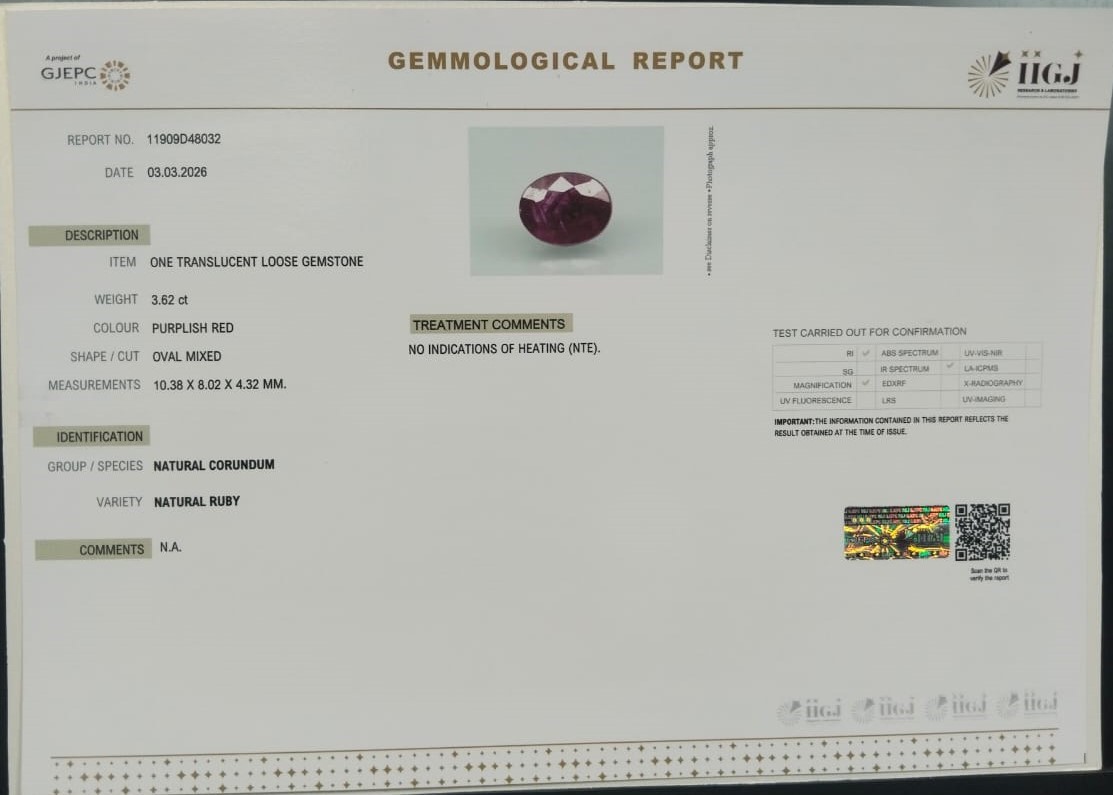 Beautiful 3.62 Cts Natural Ruby (AAA+-Mines) sva 4+ Ratti RUBY. Free Horoscope & Free Pundit Ji Astrological Advise / Consultation. Original Natural Lab certified gems by IGI GTL / Birth stones / Large Gem Selection of shree shubh Rashi Ratan Vedic dhan at Gem Mines. May Bhagwan Brahma, Vishnu, Shiv & Universe bless you.