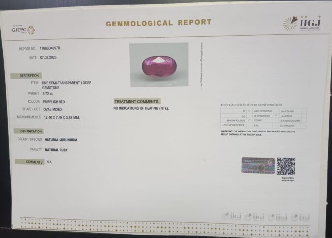 Beautiful 3.72 Cts Natural Ruby (Top-Mines) sva 4+ Ratti RUBY. Free Horoscope & Free Pundit Ji Astrological Advise / Consultation. Original Natural Lab certified gems by IGI GTL / Birth stones / Large Gem Selection of shree shubh Rashi Ratan Vedic dhan at Gem Mines. May Bhagwan Brahma, Vishnu, Shiv & Universe bless you.