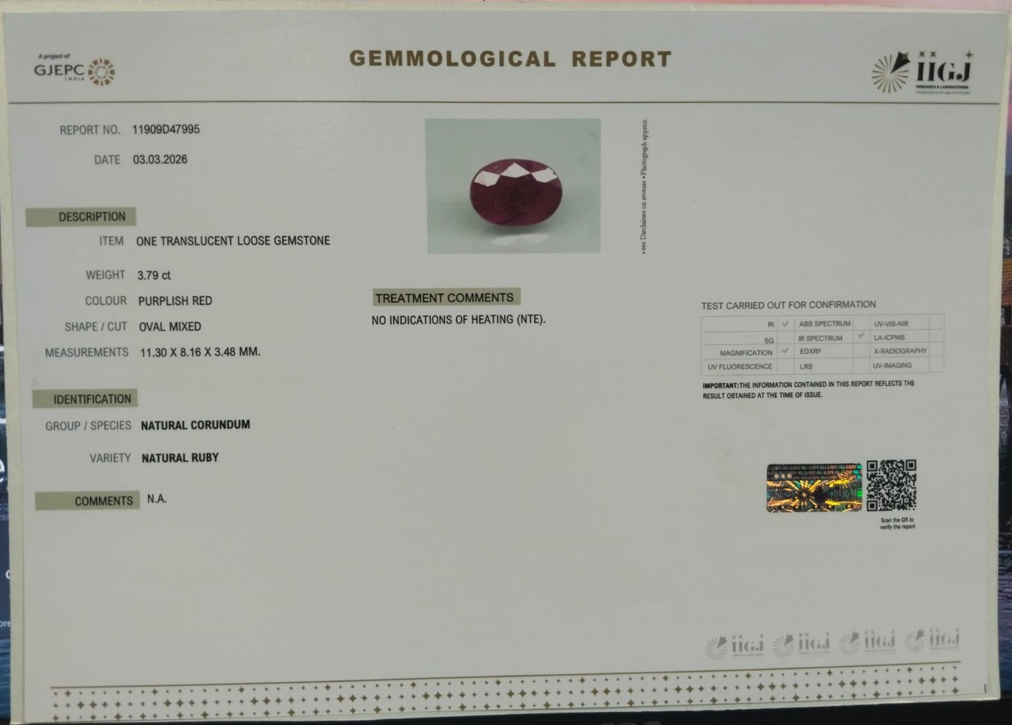 RUBY 3.79 Ct.