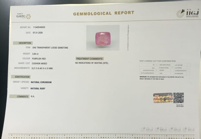 Beautiful 3.8 Cts Natural Ruby (Top++-Mines) sva 4+ Ratti RUBY. Free Horoscope & Free Pundit Ji Astrological Advise / Consultation. Original Natural Lab certified gems by IGI GTL / Birth stones / Large Gem Selection of shree shubh Rashi Ratan Vedic dhan at Gem Mines. May Bhagwan Brahma, Vishnu, Shiv & Universe bless you.