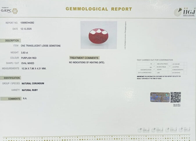 Beautiful 3.83 Cts Natural Ruby (Top-Mines) sva 4+ Ratti RUBY. Free Horoscope & Free Pundit Ji Astrological Advise / Consultation. Original Natural Lab certified gems by IGI GTL / Birth stones / Large Gem Selection of shree shubh Rashi Ratan Vedic dhan at Gem Mines. May Bhagwan Brahma, Vishnu, Shiv & Universe bless you.