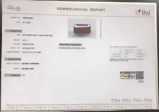 Beautiful 3.91 Cts Natural Ruby (Top-Mines) sva 4+ Ratti RUBY. Free Horoscope & Free Pundit Ji Astrological Advise / Consultation. Original Natural Lab certified gems by IGI GTL / Birth stones / Large Gem Selection of shree shubh Rashi Ratan Vedic dhan at Gem Mines. May Bhagwan Brahma, Vishnu, Shiv & Universe bless you.