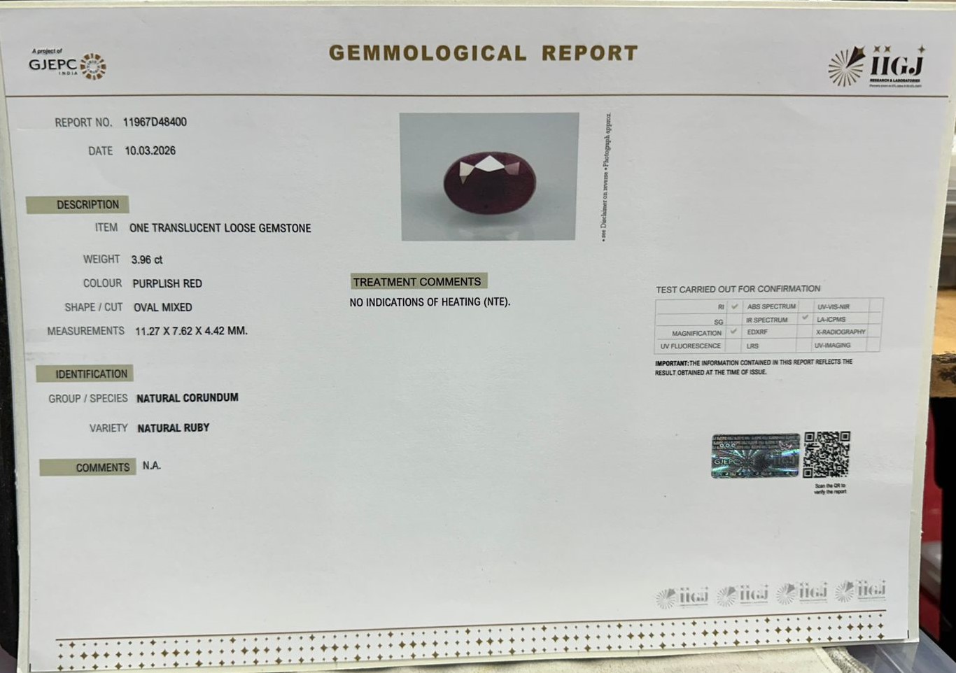 RUBY 3.96 Ct.