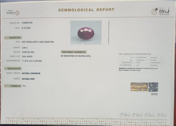 Beautiful 3.99 Cts Natural Ruby (Top-Mines) sva 4+ Ratti RUBY. Free Horoscope & Free Pundit Ji Astrological Advise / Consultation. Original Natural Lab certified gems by IGI GTL / Birth stones / Large Gem Selection of shree shubh Rashi Ratan Vedic dhan at Gem Mines. May Bhagwan Brahma, Vishnu, Shiv & Universe bless you.