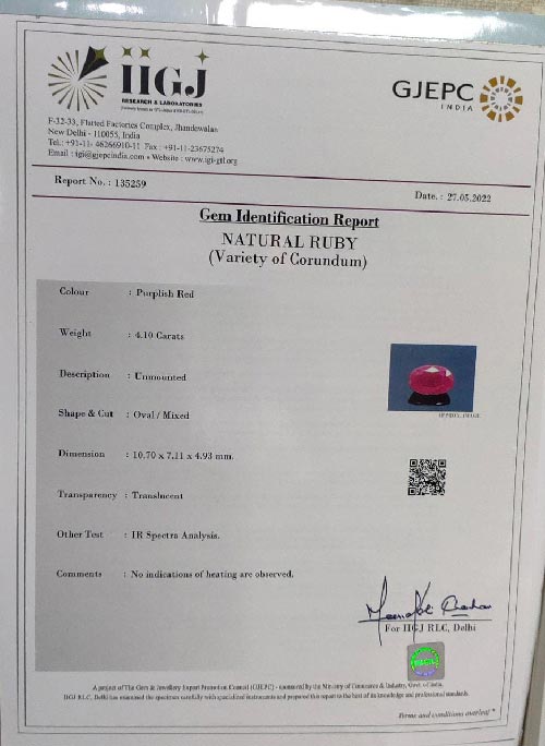 Beautiful 4.1 Ct. Ruby (African Mines) Sava 4 Ratti Manik. Free Horoscope & Free Pundit Ji Advise / Consultation. Original Natural Lab certified gems by IGI GTL / Birth stones / Large Gem Selection of shree shubh Rashi Ratan Vedic dhan at Gem Mines. May Bhagwan Brahma, Vishnu, Shiv & Universe bless you.