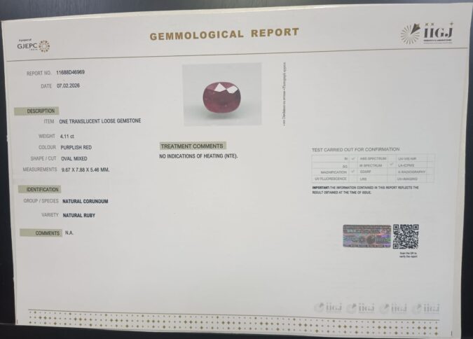 Beautiful 4.11 Cts Natural Ruby (AAA+-Mines) sva 4+ Ratti RUBY. Free Horoscope & Free Pundit Ji Astrological Advise / Consultation. Original Natural Lab certified gems by IGI GTL / Birth stones / Large Gem Selection of shree shubh Rashi Ratan Vedic dhan at Gem Mines. May Bhagwan Brahma, Vishnu, Shiv & Universe bless you.