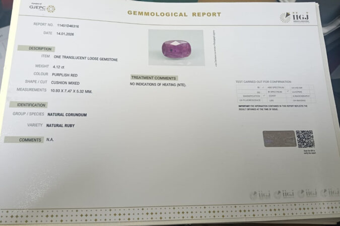 Beautiful 4.12 Cts Natural Ruby (Top+-Mines) sva 4+ Ratti RUBY. Free Horoscope & Free Pundit Ji Astrological Advise / Consultation. Original Natural Lab certified gems by IGI GTL / Birth stones / Large Gem Selection of shree shubh Rashi Ratan Vedic dhan at Gem Mines. May Bhagwan Brahma, Vishnu, Shiv & Universe bless you.