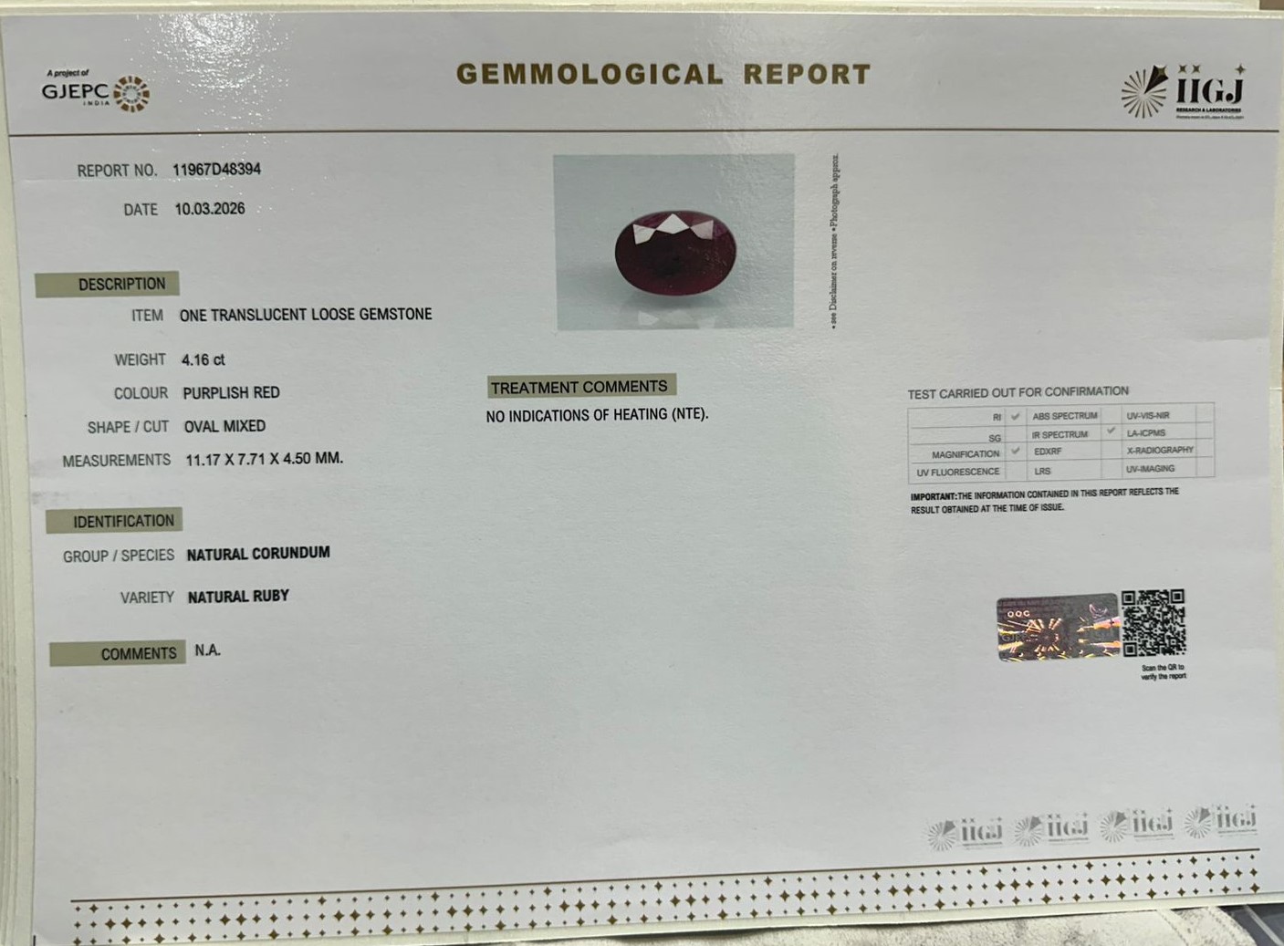 RUBY 4.16 Ct.