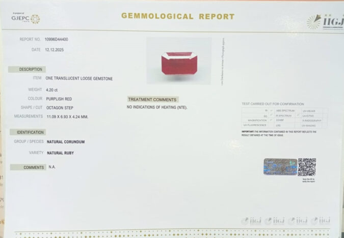 Beautiful 4.2 Cts Natural Ruby (Top-Mines) sva 4+ Ratti RUBY. Free Horoscope & Free Pundit Ji Astrological Advise / Consultation. Original Natural Lab certified gems by IGI GTL / Birth stones / Large Gem Selection of shree shubh Rashi Ratan Vedic dhan at Gem Mines. May Bhagwan Brahma, Vishnu, Shiv & Universe bless you.