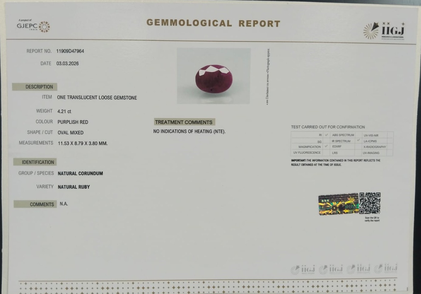 RUBY 4.21 Ct.