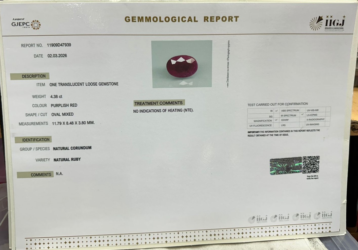 RUBY 4.38 Ct.